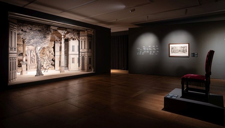Na wystawie można zobaczyć malarstwo i grafikę z epoki, historyczne instrumenty muzyczne, dokumenty i druki z XVII wieku — łącznie ponad sto artefaktów pochodzących ze zbiorów polskich i europejskich instytucji. Obok zabytkowych eksponatów przestrzeń wypełniają rekonstrukcje i makiety teatru zamkowego, projekcje multimedialne oraz obiekty interaktywne przybliżające mechanikę sceny barokowej. Scenografia wystawy, zaprojektowana przez Wojciecha Cicheckiego, to niemal autonomiczna realizacja artystyczna — oparta na iluzjach perspektywicznych, grze światła, warstw, kolorów i dźwięku.